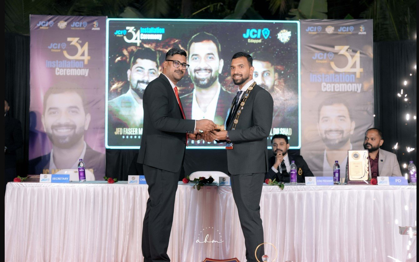 എടപ്പാൾ:- ജെ സി ഐ എടപ്പാളിൻ്റെ 34ാം സ്ഥാനാരോഹണ ചടങ്ങ് റൈഹാൻ കോളേജിൽ വെച്ച് നടന്നു.പുതിയ പ്രസിഡണ്ടായി മുഹമ്മദ് ജാബിർ ,സെക്രട്ടറിയായി ഫസീർമുഹമ്മദ്,ട്രഷററായി അബ്ദുൾ ദിൽഷാദ് എന്നിവർ ചുമതലയേറ്റു.